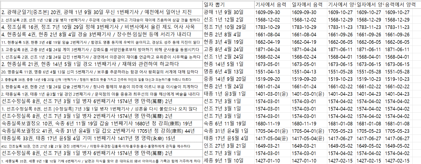 어떤 분이 조선왕조실록의 날짜를 변환하는 방법을 Excel로 구현하셨길래,1900~2100년의 음력/양력 변환을 함수로 만들어 둔것도 있고,천문연구원의 음력/양력 API를 이용하여 기원전 59년부터 일일 날짜 정보를 수집한 것도 있고,,,이 자료를 이용해서 API없이 1300~2100년까지 음력/양력 변환 및 조선왕조실록 기사에서 음력 또는 양력(그레고리력)으로 변환할 수 있도록 함수를 만들었습니다. EGTools 추가 기능에서 필요한 함수만 뽑아와서 만들었으므로 조금 가볍게 사용할 수 있습니다.혹시 EGTools 추가기능을 사용하시는 분은 중복사용하지 않도록 주의하세요.(중복 사용시 동일 함수명으로 어떤 부작용이 있을지 알 수 없습니다) 사용후 결과를 점검해 보시고, 오류가 있으면 알려 주세요. 최종수..