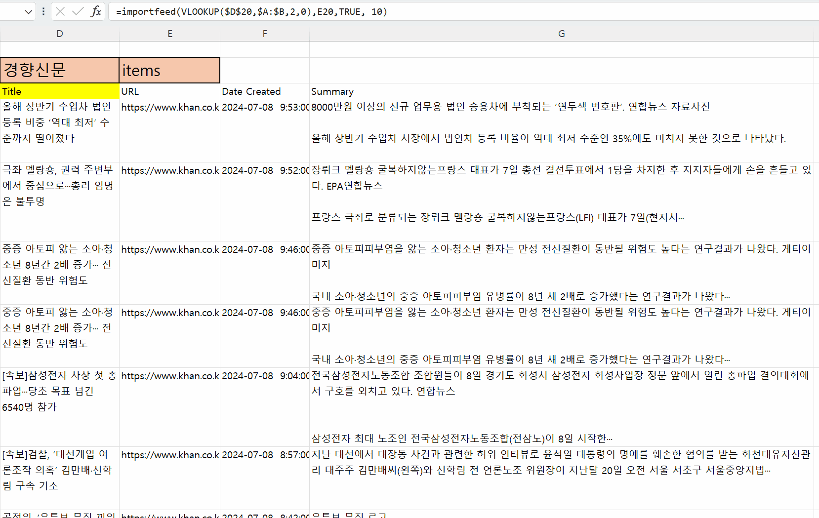 IMPORTFEED 함수 (Google Sheets 호환 함수)