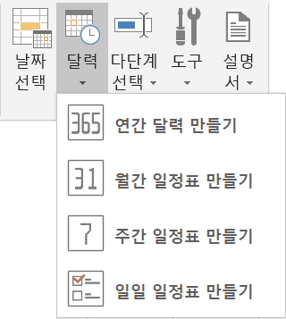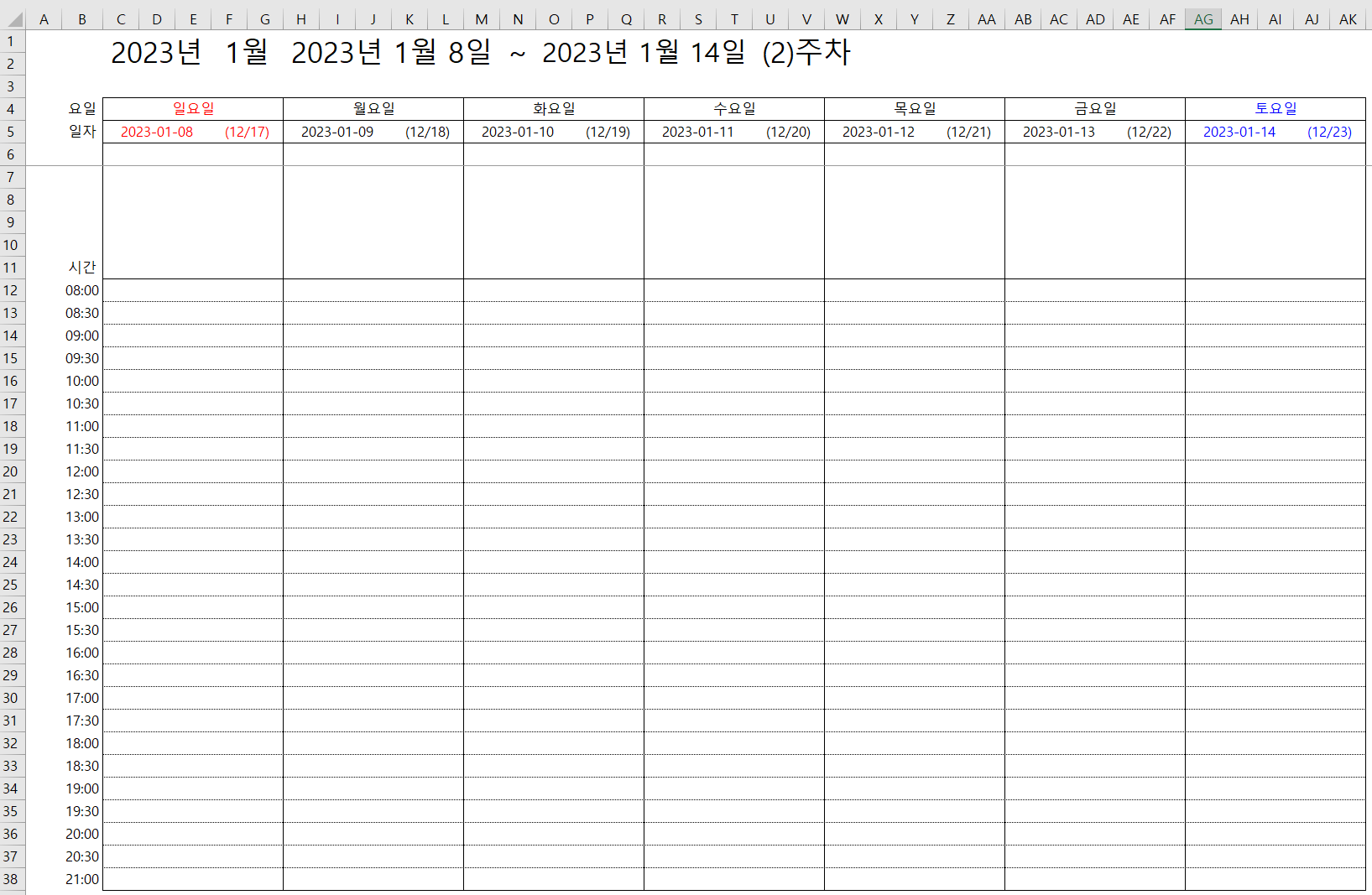 - 일요일부터 시작하는 주간 일정표에, 음력, 공휴일, 시간 일정표를 표시합니다.