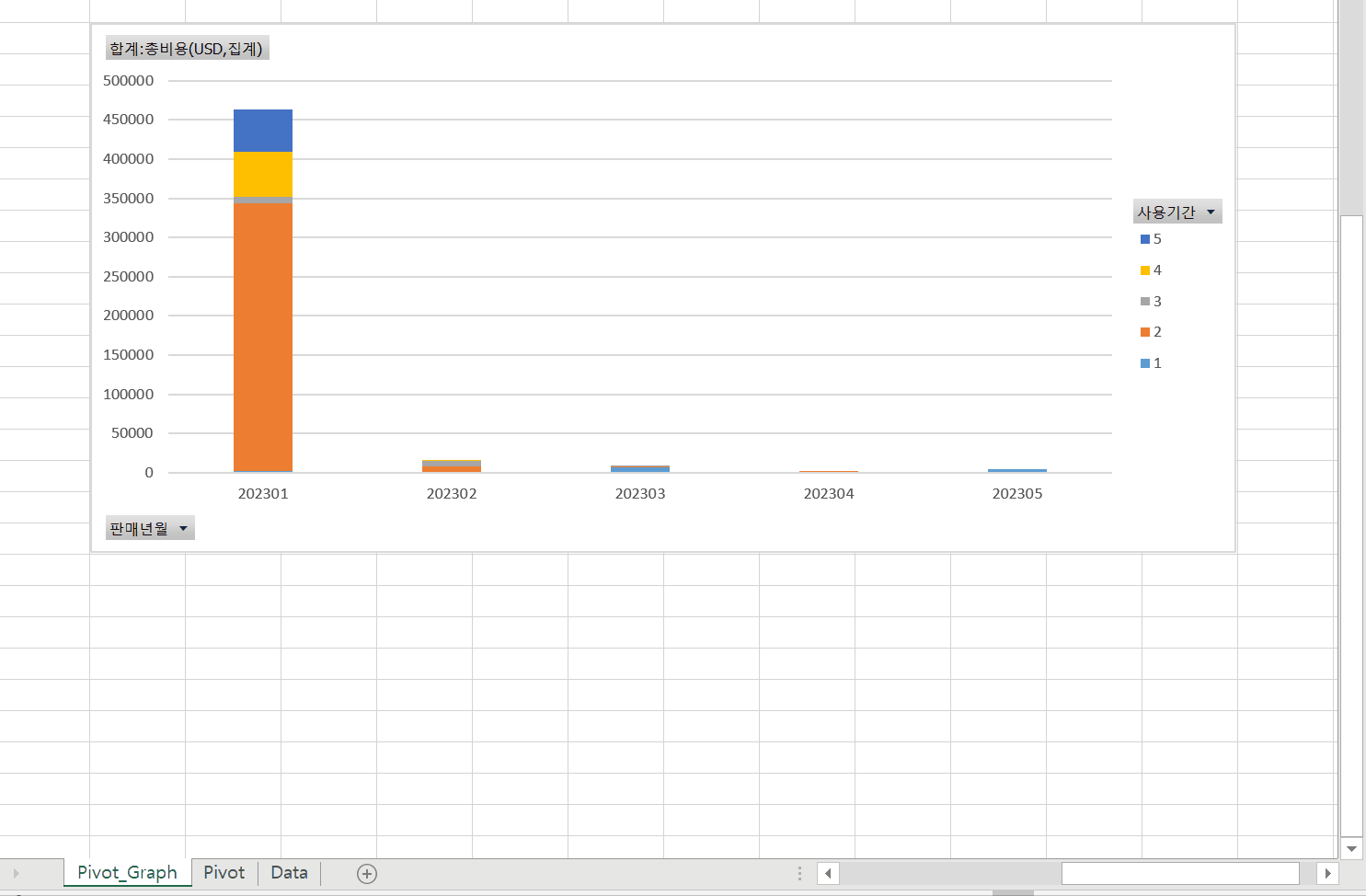 피벗 차트에서도 막대 그래프를 더블클릭하면 세부 데이터를 보여주는 기능을 구현한 것입니다.
