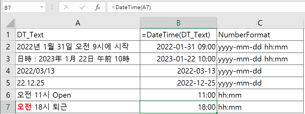 일반적인 날짜, 시간 형때뿐만 아니라 한글, 한자가 포함된 날짜와 시간형 문자열을 날짜와 시간으로 변환