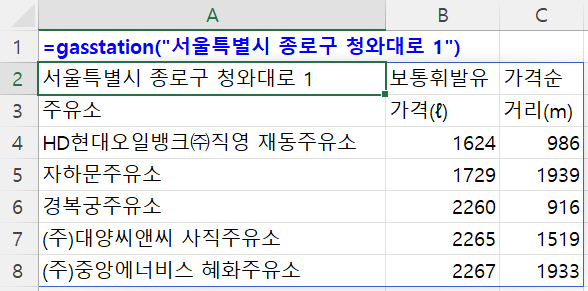 OPINET에서 제공하는 API를 이용하여 주변 유가를 검색하는 함수