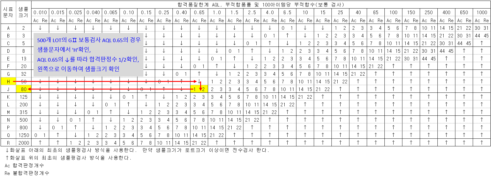 그 다음은 3가지 검사방법(보통 검사, 수월한 검사, 까다로운 검사)의 주샘플링표를 배열에 담아야 합니다.