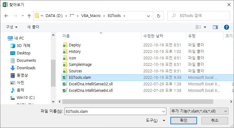 여기까지가 일반적으로 Excel의 추가기능을 설치하는 방법입니다.