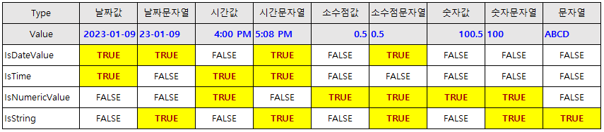 VBA로 셀값의 형태가 어떤 것인지 판단하기 위해서 여러가지 방법을 사용합니다만,