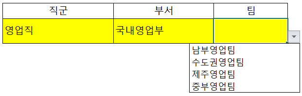 유효성 검사를 통해서 사용자가 입력할 수 있는 자료를 선택할 수 있는 Dropdown List를 만드는데,
