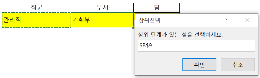 - 2단계부터는 상위 단계가 설정된 셀을 선택 : 기본값으로 왼쪽 셀이 선택됨