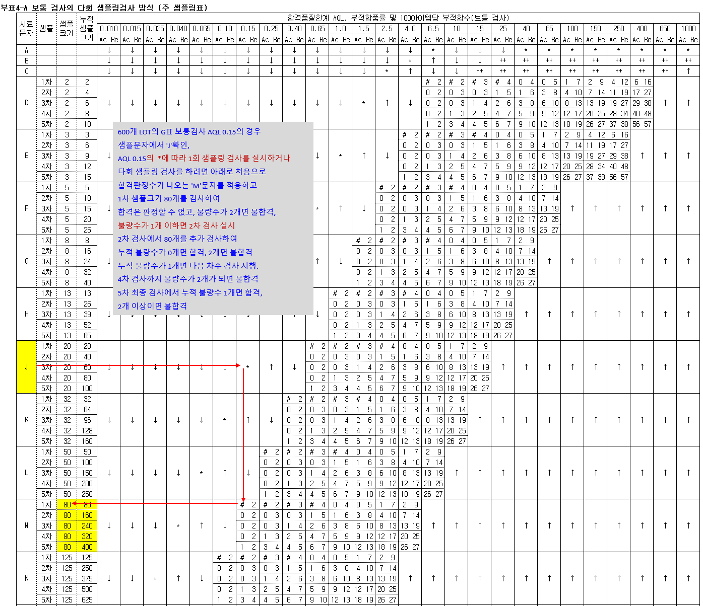 여기에 올린 파일은 1회샘플링 검사 방식뿐만 아니라 2회 샘플링 검사 방식과 다회샘플링 검사 방식에 대해서도 사용할 수 있도록 확장하였습니다. 표준에서 기술한 샘플링표는 첨부 문서 안에 그대로 옮겼습니다.