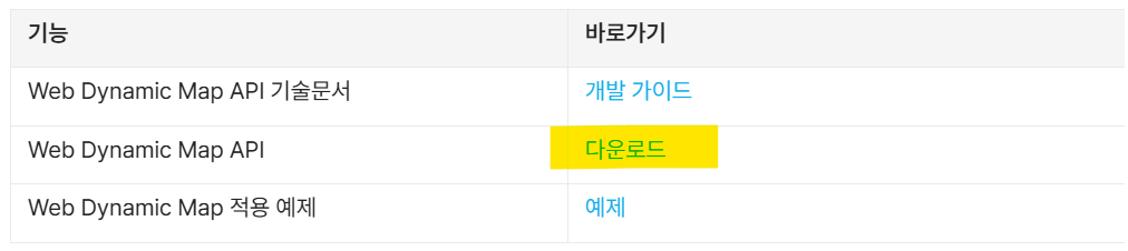 Naver Map API에서 Web Dynamic Map API 가이드와 예제를 다운로드 할 수 있도록 안내하는데,