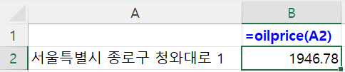 사용후에는 시트 재계산시마다 API를 사용하게 되므로 반드시 값으로 변환하여 저장하시기 바랍니다.