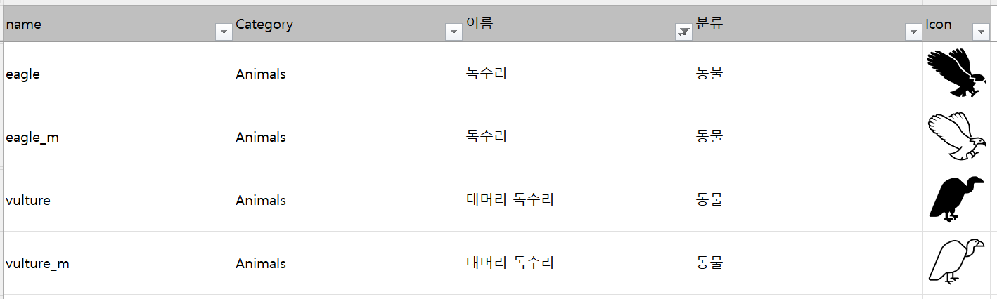 - 현재 보이는 행에 대해서 Icon을 삽입합니다.