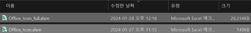 (아마도 전체 Icon을 포함하여 저장하는 시간보다 사용할 때마다 Icon 삽입 하는 게 더 빠를 듯...)