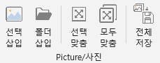 - 전체 저장 : 현재 시트의 모든 사진을 지정하는 폴더로 일괄 저장합니다.