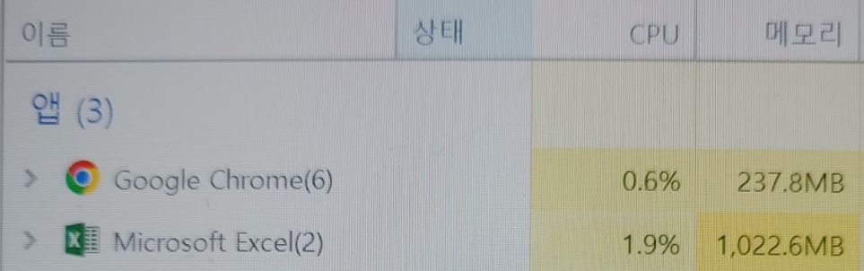 다운로드 한 지도가 수백장이 되니,,, Excel의 메모리 사용량이 1GB를 넘기게 되었습니다.