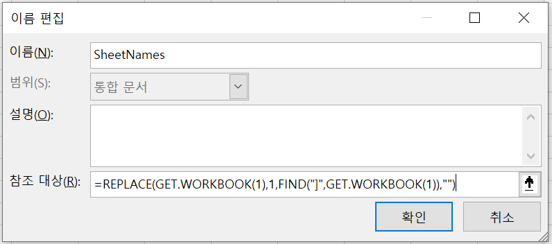 먼저 이름관리자에서 아래와 같이 이름을 정의합니다.