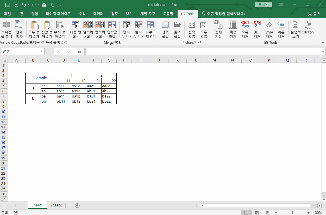 피벗테이블이나 Cross Tab 유형의 자료를 일반 정규화된 표로 되돌리는 작업을 합니다.