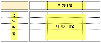 4. Sheet에 출력할 배열은 아래 그림처럼 3부분으로 나누어 처리
