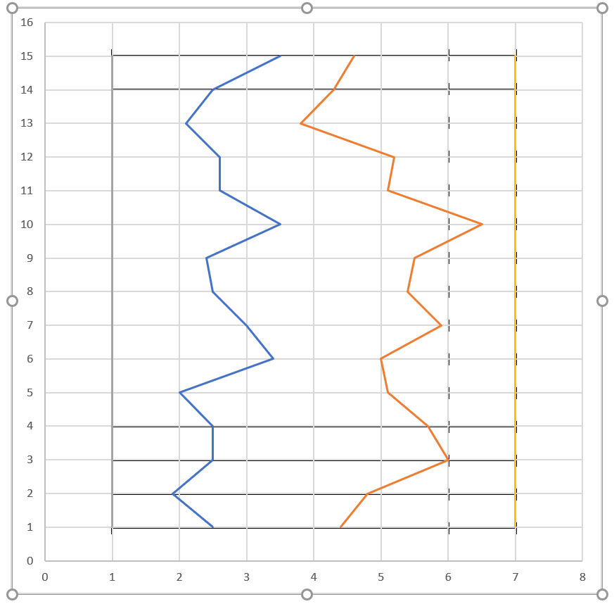 Excel의 셀 테두리로 척도를 그리고, 그 위에 그래프를 그려서 겹쳐서 만들어 보겠습니다.