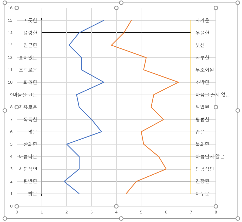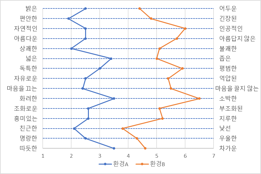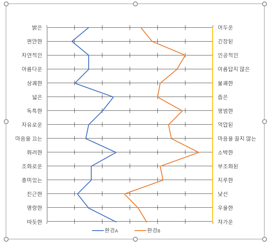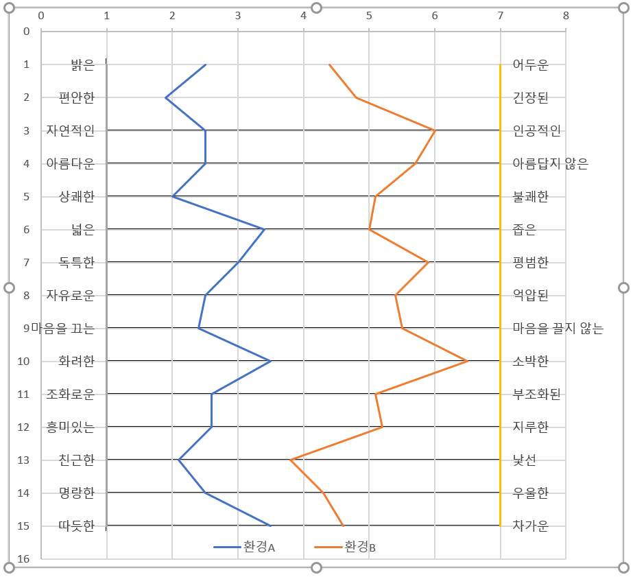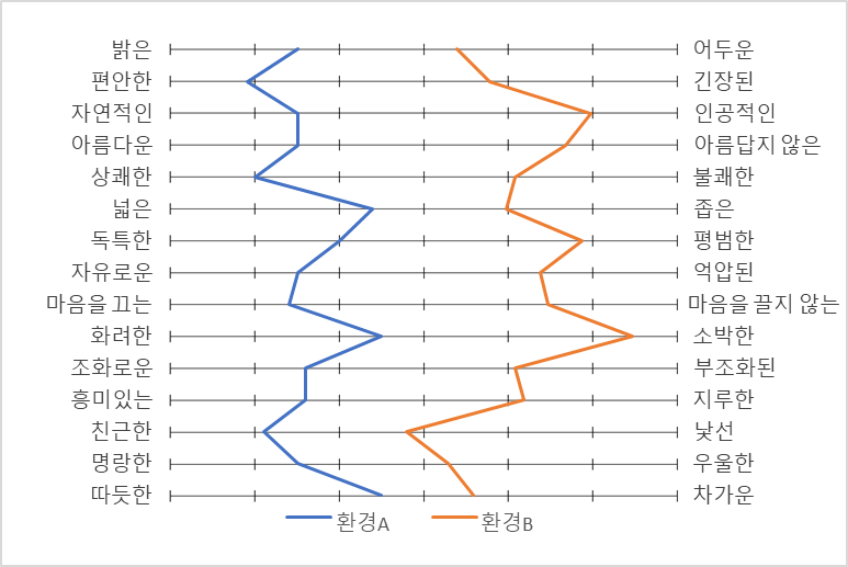 논문이나 설문조사에서 척도를 사용하여 조사한 결과표를 그래프로 그리는 것인데,