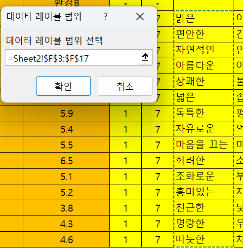 아래처럼 레이블 범위 지정창이 나오면 '왼쪽축 텍스트' 영역을 지정합니다.