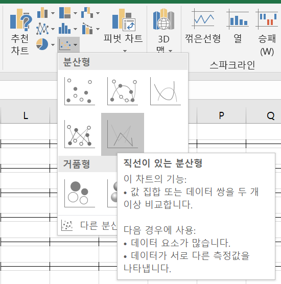 3. 직선이 있는 분산형 그래프를 선택하여 그래프 영역을 만듭니다.