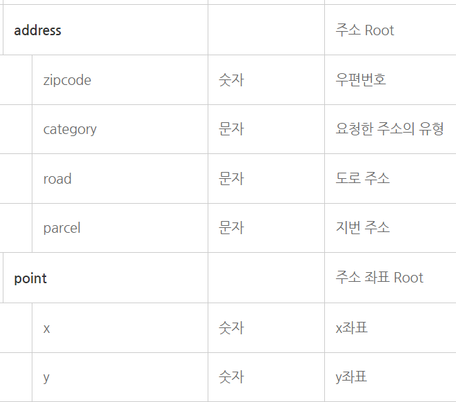 Geocoder API가 별도로 있는데, 검색API를 이용하는 이유는 정보가 좀 더 사용하기 편하기 때문입니다.